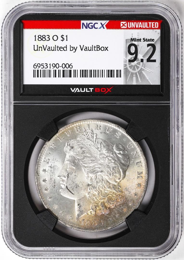 One 1883-O $1 Morgan Silver Dollar Coin NGCX Mint State 9.2 VaultBox Great Toning. NGCX Certified.