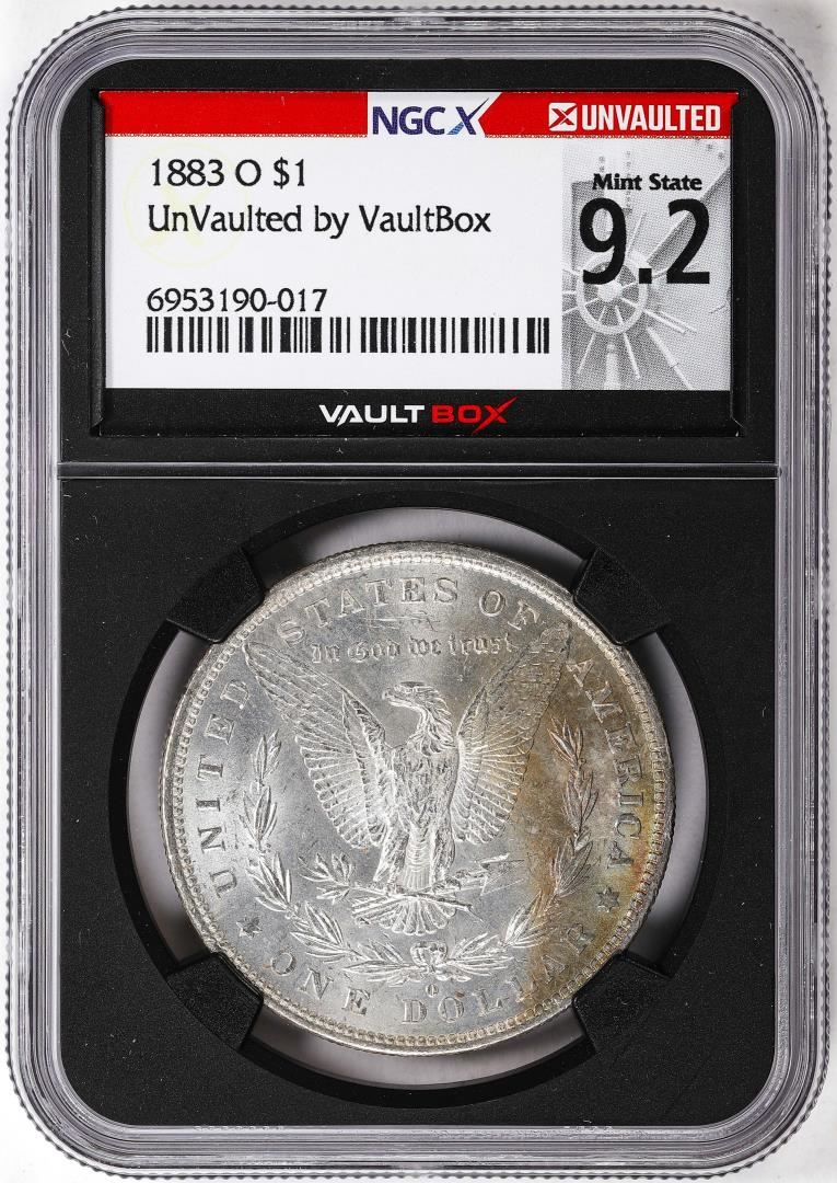 One 1883-O $1 Morgan Silver Dollar Coin NGCX Mint State 9.2 VaultBox Great Toning. NGCX Certified.
