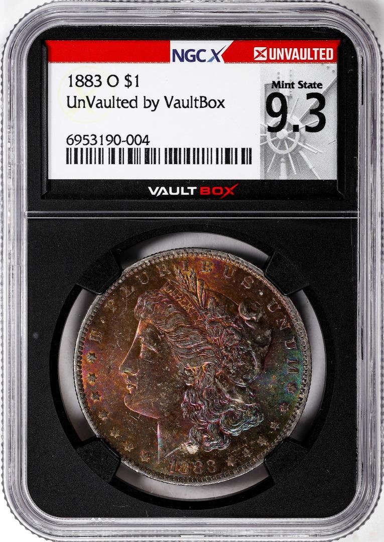 One 1883-O $1 Morgan Silver Dollar Coin NGCX Mint State 9.3 VaultBox Amazing Toning. NGCX Certified.