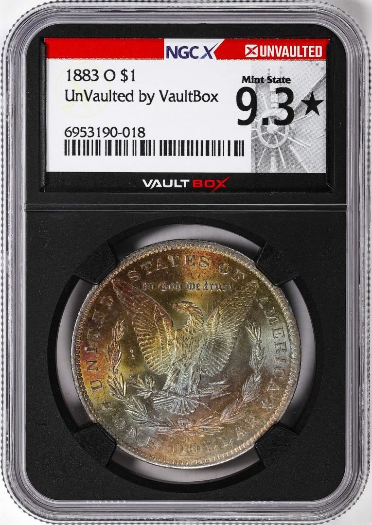 One 1883-O $1 Morgan Silver Dollar Coin NGCX Mint State 9.3* VaultBox Amazing Toning. NGCX Certified.