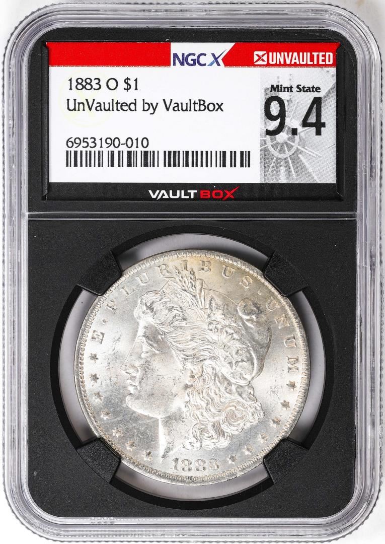One 1883-O $1 Morgan Silver Dollar Coin NGCX Mint State 9.4 VaultBox Unvaulted. NGCX Certified.