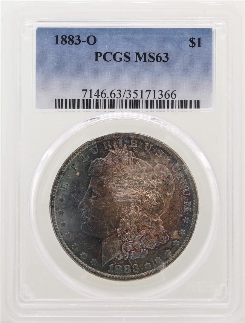 One 1883-O $1 Morgan Silver Dollar Coin PCGS MS63 Amazing Toning. PCGS Graded.