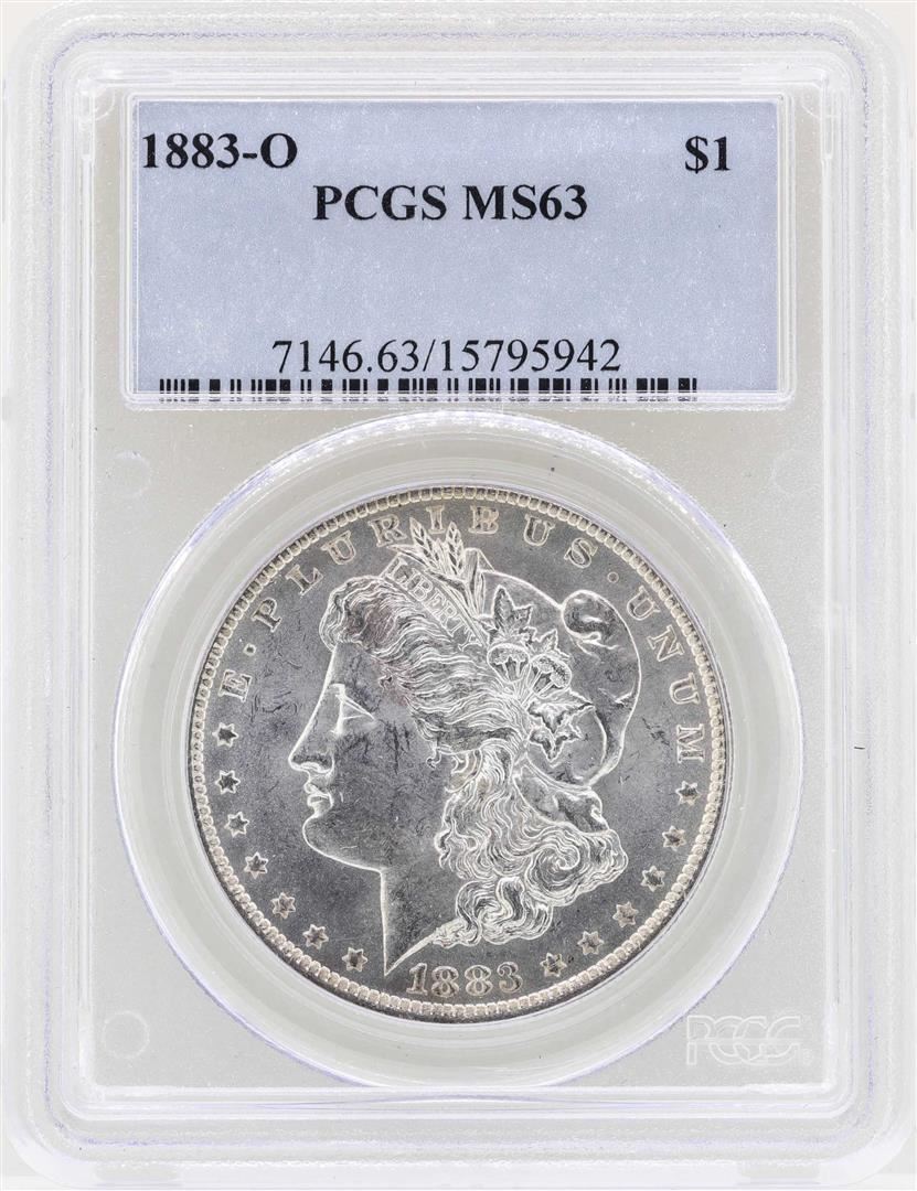 One 1883-O $1 Morgan Silver Dollar Coin PCGS MS63. PCGS Graded.