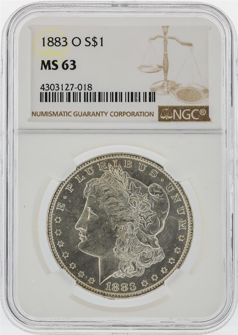 One 1883-O $1 Morgan Silver Dollar NGC Graded MS63. NGC Certified.