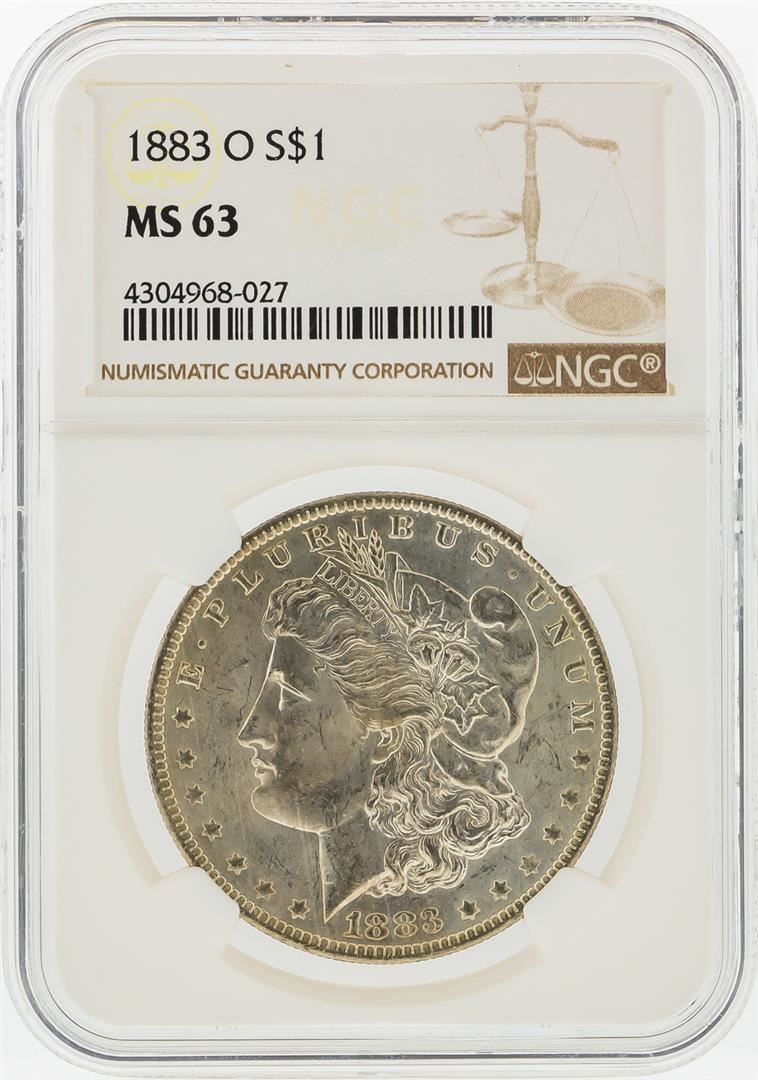 One 1883-O $1 Morgan Silver Dollar NGC Graded MS63. NGC Certified.