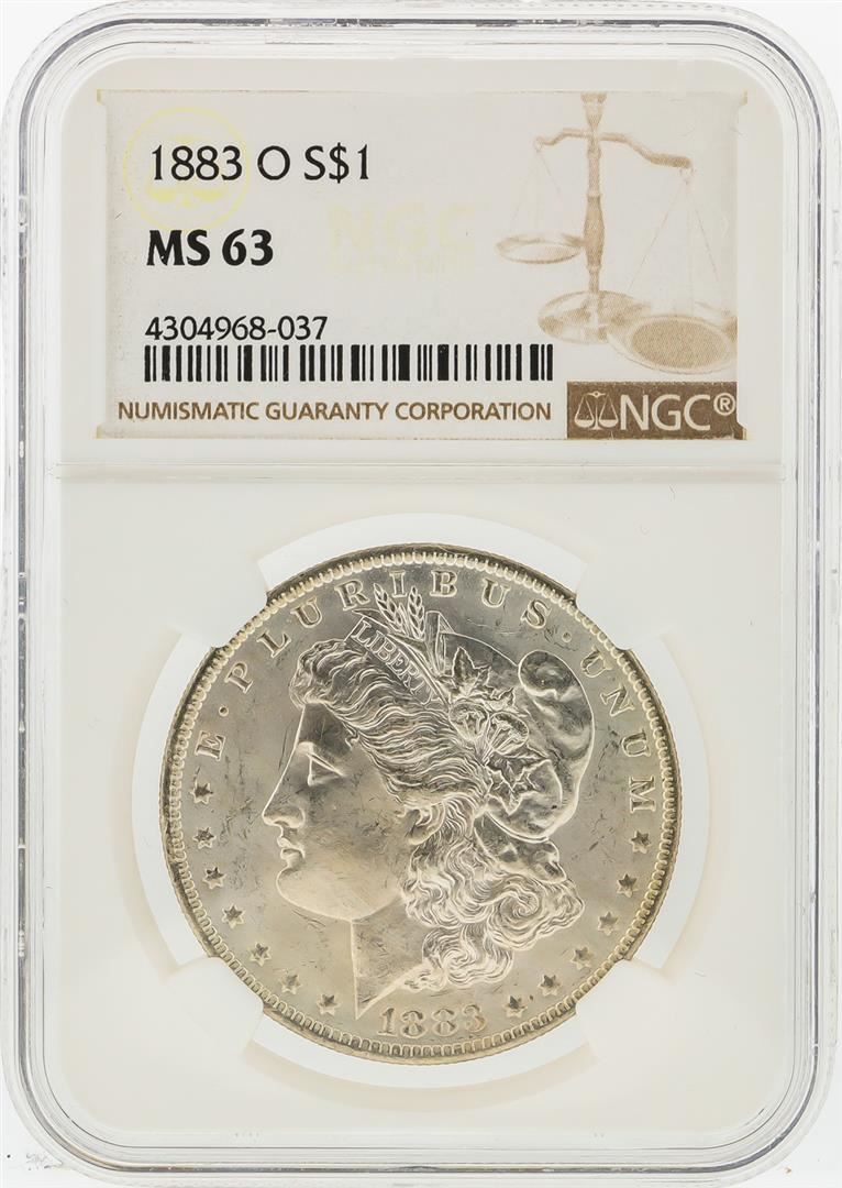 One 1883-O $1 Morgan Silver Dollar NGC Graded MS63. NGC Certified.