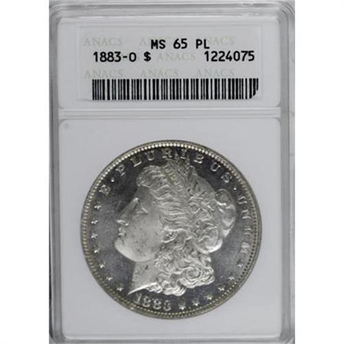 <B>1883-O $1 MS65 Prooflike ANACS.</B></I> NGC Census: (109/13). PCGS Population (136/10). Numismedia Wsl. Price for NGC/PCGS coin in MS65: $232. (#7147)<BR><BR><B>Coin Engraver:</B> George T. Morgan<BR><BR><b>Shipping:</b> Coins & Currency (<a target="_blank" href="http://www.heritageauctions.com/common/shipping.php">view shipping information</a>)