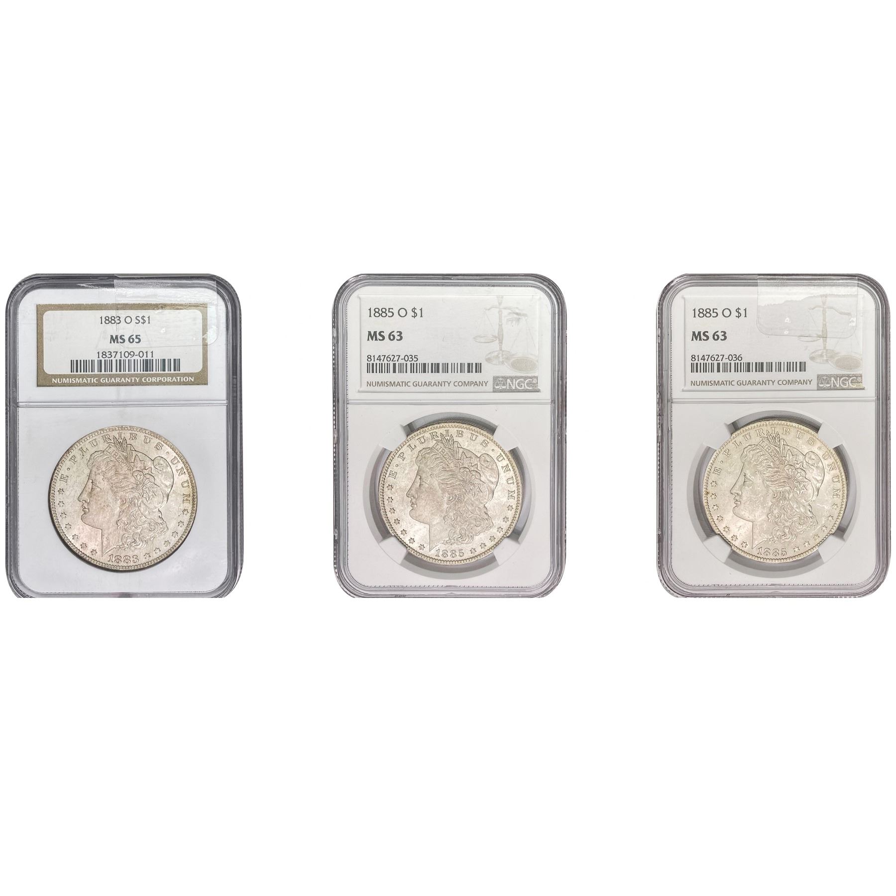 1883-O/1885-O [3] Morgan Silver Dollar NGC MS63-65
