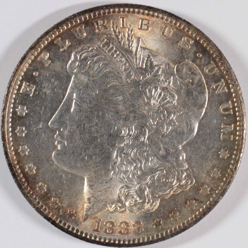 1883-O MORGAN SILVER DOLLAR, MS-63 SPECTACULAR COLOR!