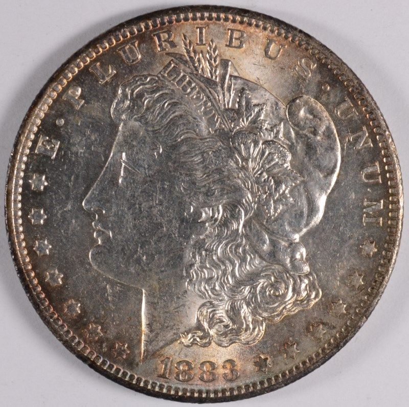 1883-O MORGAN SILVER DOLLAR, MS-63 SPECTACULAR COLOR!
