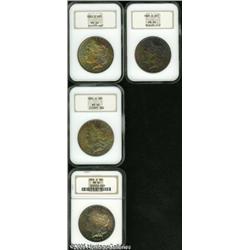 <B>1883-O<img border='0' src='http://www.heritagecoins.com/images/star.gif' width=10 height=10>$1 MS64 NGC,</B></I> colorful obverse toning; <B>1884-O MS64 NGC,</B></I> blue-green, gold, and crimson colors show on the obverse; <B>1885-O MS64 NGC,</B></I> very deep multicolored iridescence shows on the obverse; and a <B>1904-O MS64 NGC,</B></I> richly toned on both sides. 4 Coins Lot:10127