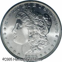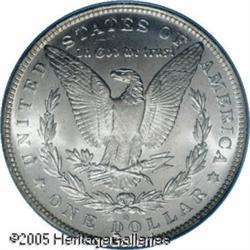 <B>1883-O<img border='0' src='http://www.heritagecoins.com/images/star.gif' width=10 height=10>$1 MS67 PCGS.</B></I> Bright, satiny surfaces are nicely struck for this often substandard New Orleans issue and have escaped all but the most insignificant signs of contact. Perhaps its most endearing feature, however, is a bright, snow-white appearance over each side. Population: 28 in 67, none finer at either service (1/05).<BR><I>From The Banks Collection.</B></I> Lot:10130