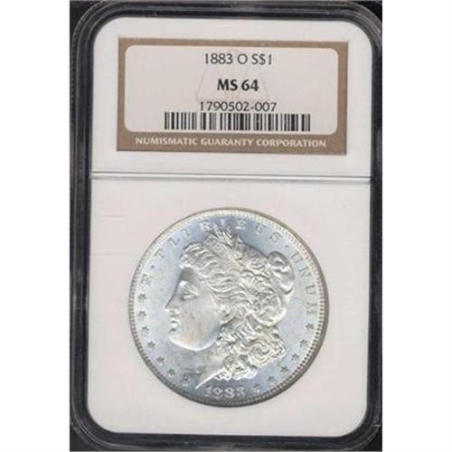 <b>1883-O Morgan Dollar. NGC graded MS64.</b> Choice shimmering mint brilliance is seen over each side of this fully struck '84-O <b>(PCGS # 7146)</b>