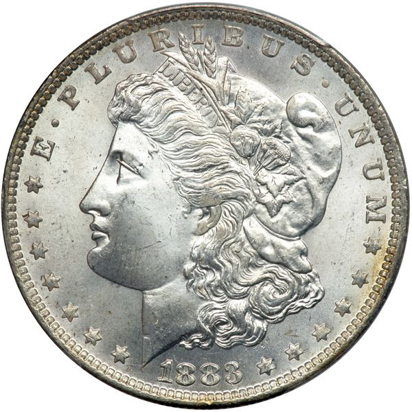 1883-O Morgan Dollar. PCGS graded MS-66+. An exceptional example, deep into the "Gem" class. Pop 3; 33 finer, 32 in 67, 1 in 67+. A coin new to the population report (PCGS # 7146) .