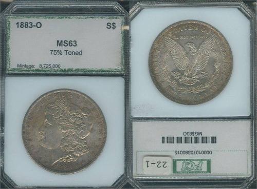 1883-O Morgan Dollar PCI MS63; Interesting original toning!