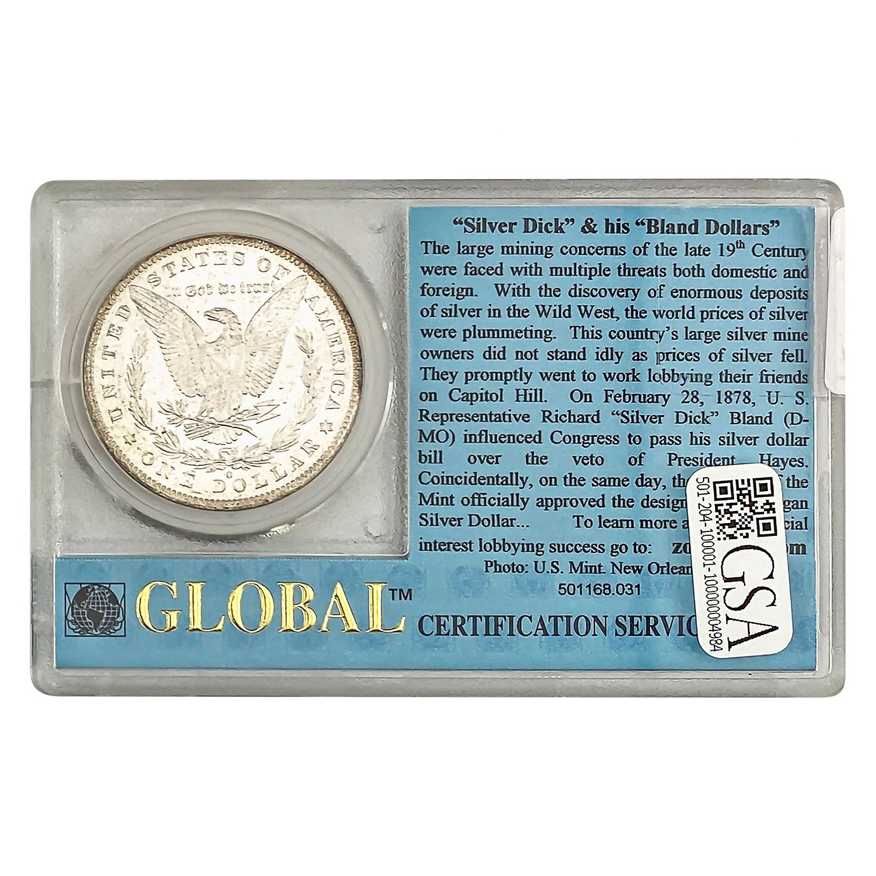 l. All non-certified coins and currency are guaranteed genuine, but are not guaranteed as to grade, since grading is a matter of opinion, an art and not a science, and therefore the description rendered by GSA or any third-party grading service may not agree with the opinion of others (including trained experts), and the same expert may not grade the same item with the same grade at two different times. GSA may, but is not obligated to, express an opinion as to non-certified numismatic items, in GSA’s opinion, or by its employees’ experience and the current interpretation of the American Numismatic Association’s standards as of the date the catalog was prepared. There is no guarantee or warranty expressed or implied that the grading opinions utilized by GSA, if any, will meet the standards of any grading service at any time in the future.