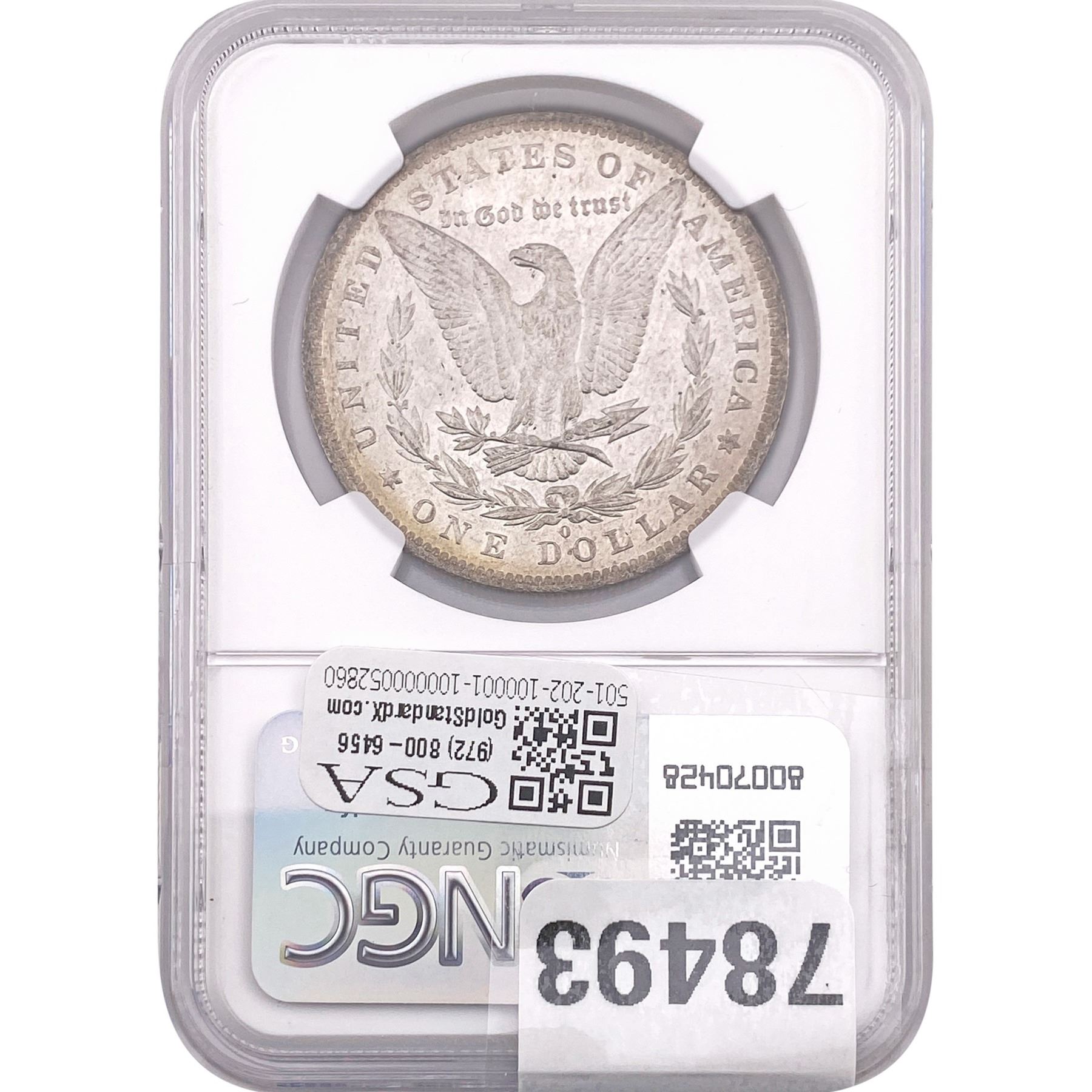 e. Coins sold referencing a third-party grading service are sold “AS IS” without any express or implied warranty, except for a guarantee by GSA that they are genuine. Removal or alteration of the holder, voids all of Bidder’s claims concerning that Product. Certain warranties may be available from the grading services and Bidders are referred to them for further details: Numismatic Guaranty Corporation (NGC), PO Box 4776, Sarasota, FL 34230, www.ngccoin.com/services/writtenguarantee.asp; Professional Coin Grading Services (PCGS), PO Box 9458, Newport Beach, CA 92658, www.pcgs.com/guarantee.html; ANACS, 6555 S. Kenton St., Ste. 303, Englewood, CO 80111; and Independent Coin Grading Co. (ICG), 7901 East Bellview, Ave., Suite 50, Englewood, CO 80111.