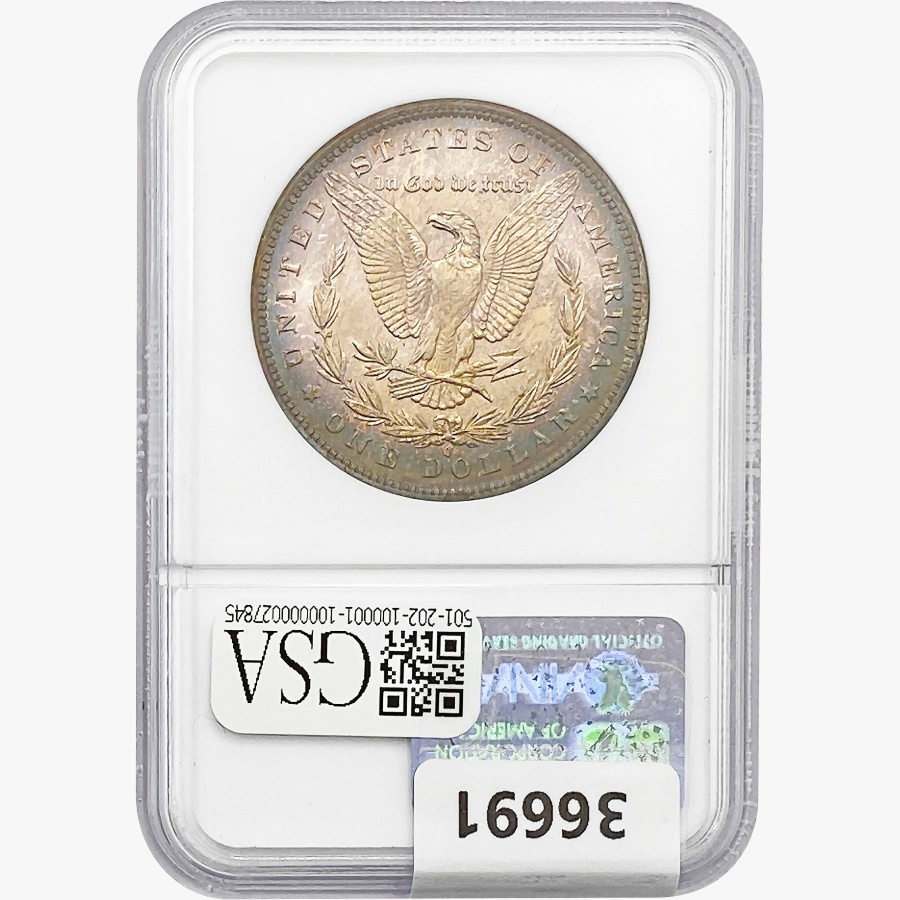l. All non-certified coins and currency are guaranteed genuine, but are not guaranteed as to grade, since grading is a matter of opinion, an art and not a science, and therefore the description rendered by GSA or any third-party grading service may not agree with the opinion of others (including trained experts), and the same expert may not grade the same item with the same grade at two different times. GSA may, but is not obligated to, express an opinion as to non-certified numismatic items, in GSA’s opinion, or by its employees’ experience and the current interpretation of the American Numismatic Association’s standards as of the date the catalog was prepared. There is no guarantee or warranty expressed or implied that the grading opinions utilized by GSA, if any, will meet the standards of any grading service at any time in the future.