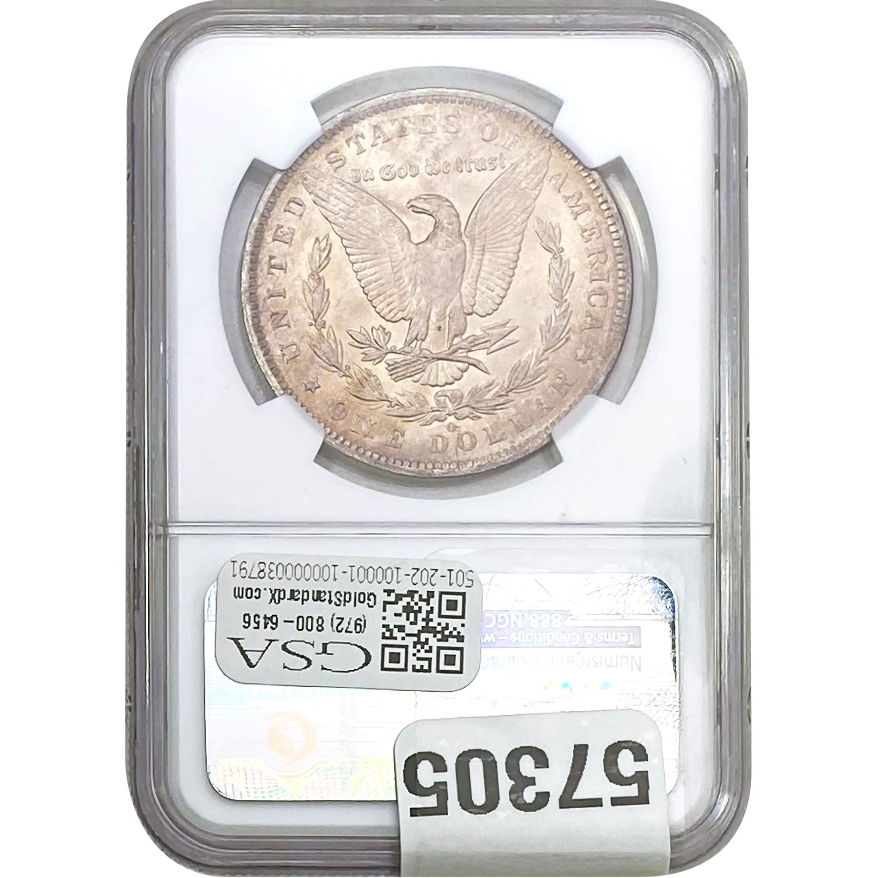 e. Coins sold referencing a third-party grading service are sold “AS IS” without any express or implied warranty, except for a guarantee by GSA that they are genuine. Removal or alteration of the holder, voids all of Bidder’s claims concerning that Product. Certain warranties may be available from the grading services and Bidders are referred to them for further details: Numismatic Guaranty Corporation (NGC), PO Box 4776, Sarasota, FL 34230, www.ngccoin.com/services/writtenguarantee.asp; Professional Coin Grading Services (PCGS), PO Box 9458, Newport Beach, CA 92658, www.pcgs.com/guarantee.html; ANACS, 6555 S. Kenton St., Ste. 303, Englewood, CO 80111; and Independent Coin Grading Co. (ICG), 7901 East Bellview, Ave., Suite 50, Englewood, CO 80111.