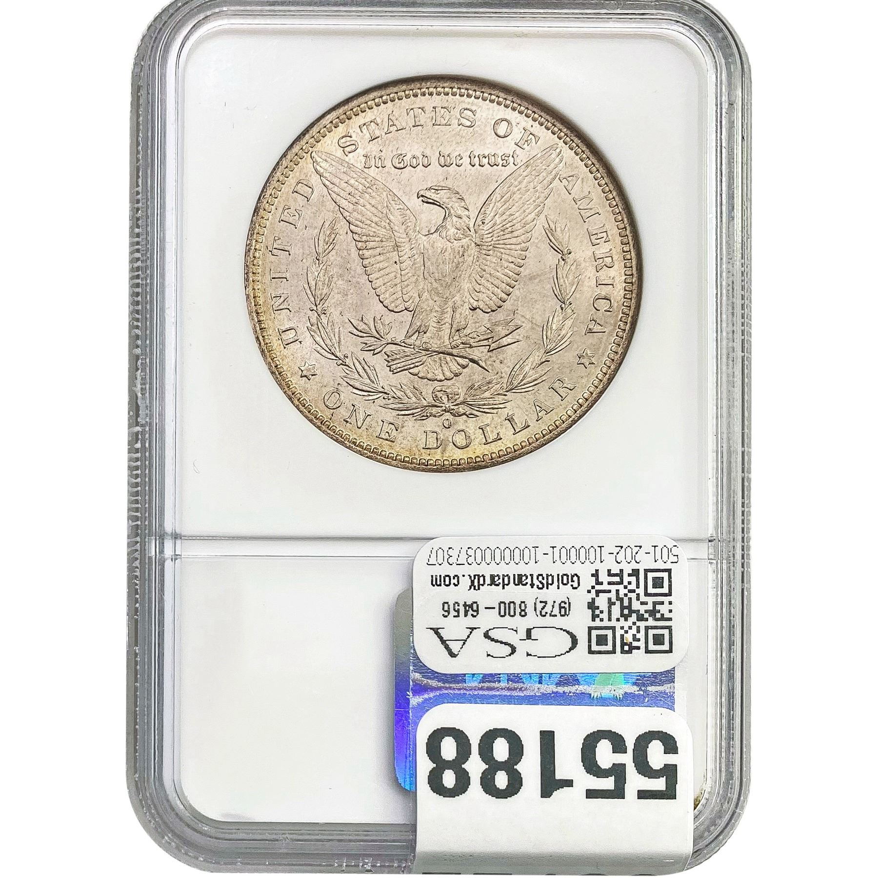 e. Coins sold referencing a third-party grading service are sold “AS IS” without any express or implied warranty, except for a guarantee by GSA that they are genuine. Removal or alteration of the holder, voids all of Bidder’s claims concerning that Product. Certain warranties may be available from the grading services and Bidders are referred to them for further details: Numismatic Guaranty Corporation (NGC), PO Box 4776, Sarasota, FL 34230, www.ngccoin.com/services/writtenguarantee.asp; Professional Coin Grading Services (PCGS), PO Box 9458, Newport Beach, CA 92658, www.pcgs.com/guarantee.html; ANACS, 6555 S. Kenton St., Ste. 303, Englewood, CO 80111; and Independent Coin Grading Co. (ICG), 7901 East Bellview, Ave., Suite 50, Englewood, CO 80111.