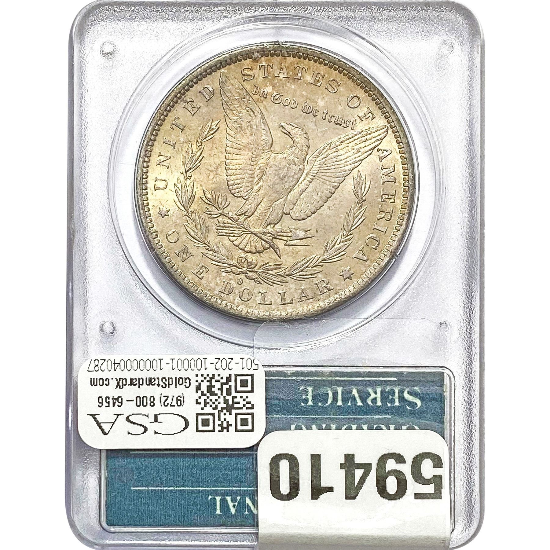 COINS AND CURRENCY LISTED IN GSA’S CATALOG AS GRADED AND ENCAPSULATED BY PCGS, NGC, ANACS, ICG, PCGS CURRENCY, PMG, PCGS BANKNOTE GRADING, CMC OR ANY OTHER THIRD-PARTY GRADING SERVICE ARE LIKEWISE SOLD “AS-IS” EXCEPT AS EXPRESSLY SET FORTH HEREIN. ALL THIRD-PARTY GRADING SERVICE GUARANTEES, INCLUDING AUTHENTICITY, ARE THE SOLE RESPONSIBILITY OF THE THIRD-PARTY GRADING SERVICE AND NOT WARRANTIES OR GUARANTEES OF GSA. BIDDERS SHOULD CONTACT THESE THIRD-PARTY GRADING SERVICES DIRECTLY WITH RESPECT TO ANY CLAIMS OR QUESTIONS THEY MAY HAVE CONCERNING THEIR GUARANTEES AND WARRANTIES. BIDDERS ACKNOWLEDGE AND AGREE THAT AUCTIONEER IS NOT BOUND BY OR LIABLE FOR ANY OPINION OR CERTIFICATION BY ANY THIRD-PARTY GRADING SERVICE. REMOVAL OF A PRODUCT FROM ITS PROTECTIVE CASING OR HOLDER OR ALTERATION OF ANY COIN HOLDER WAIVES ALL RIGHTS CONCERNING THE PRODUCT CONTAINED THEREIN.