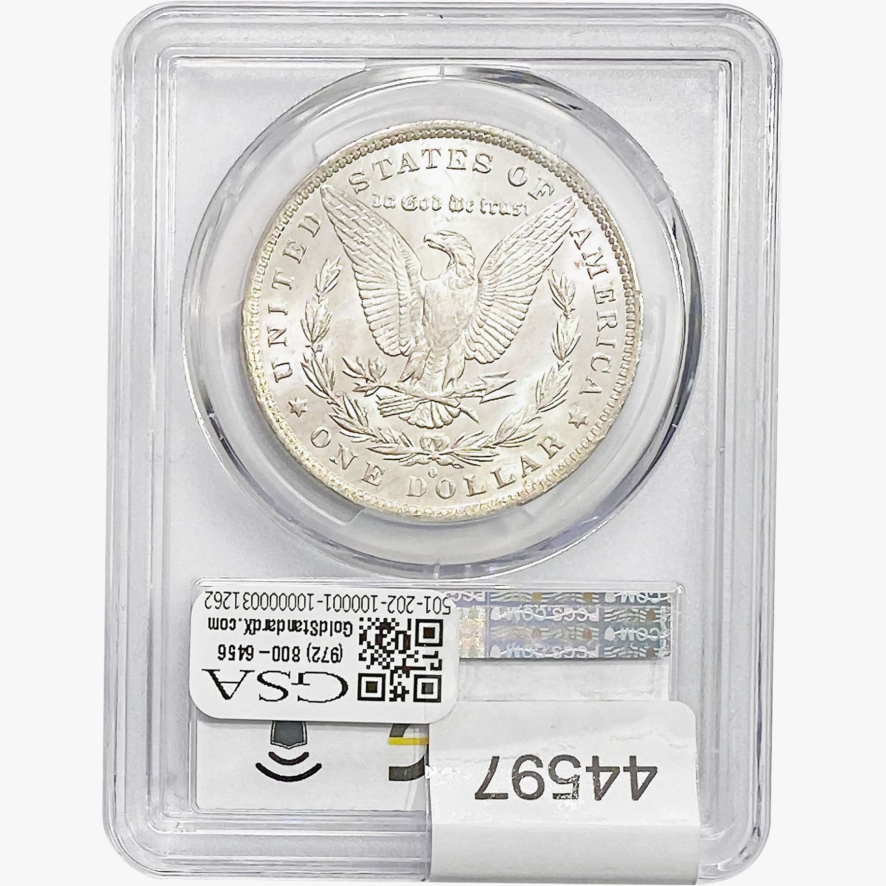 e. Coins sold referencing a third-party grading service are sold “AS IS” without any express or implied warranty, except for a guarantee by GSA that they are genuine. Removal or alteration of the holder, voids all of Bidder’s claims concerning that Product. Certain warranties may be available from the grading services and Bidders are referred to them for further details: Numismatic Guaranty Corporation (NGC), PO Box 4776, Sarasota, FL 34230, www.ngccoin.com/services/writtenguarantee.asp; Professional Coin Grading Services (PCGS), PO Box 9458, Newport Beach, CA 92658, www.pcgs.com/guarantee.html; ANACS, 6555 S. Kenton St., Ste. 303, Englewood, CO 80111; and Independent Coin Grading Co. (ICG), 7901 East Bellview, Ave., Suite 50, Englewood, CO 80111.