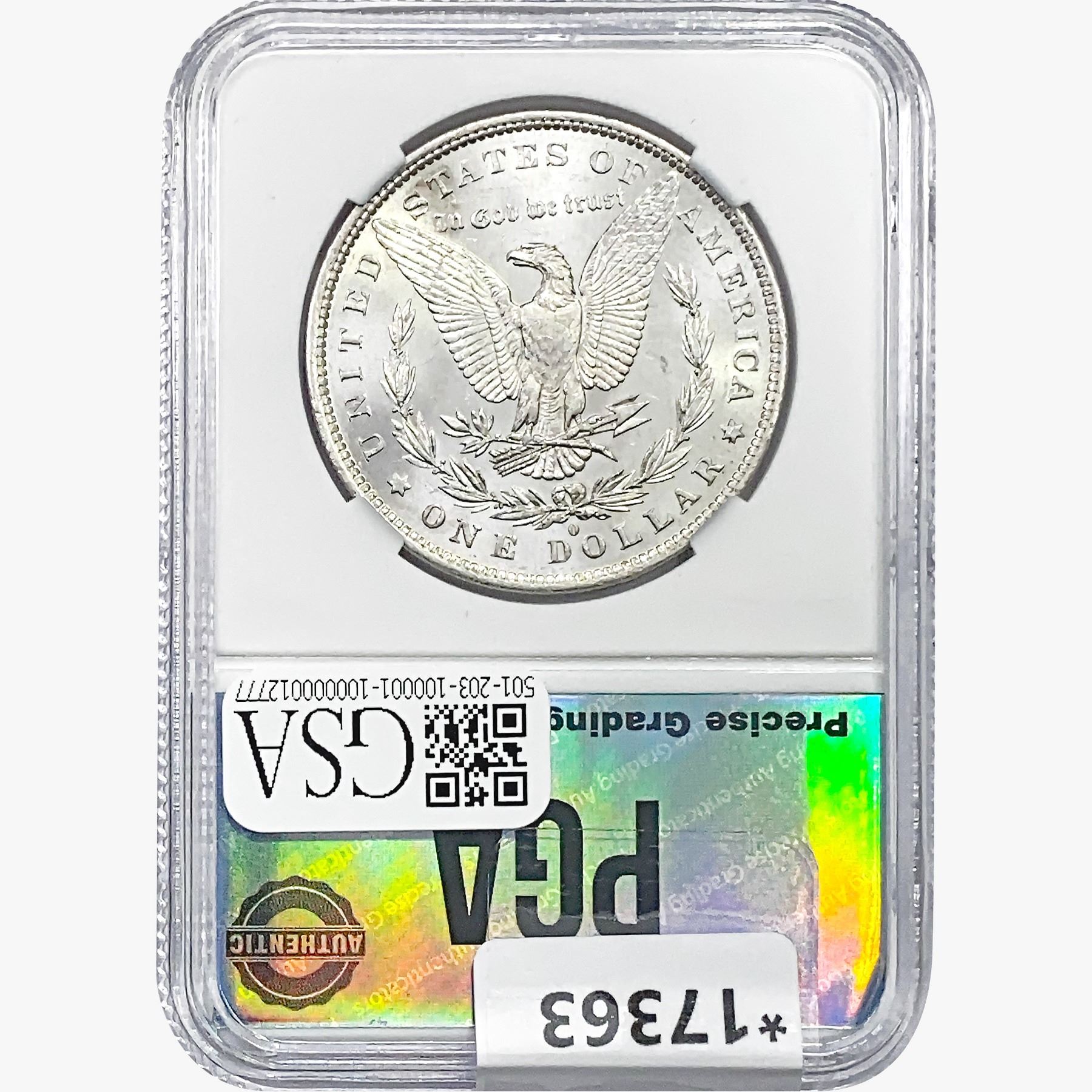 COINS AND CURRENCY LISTED IN GSA’S CATALOG AS GRADED AND ENCAPSULATED BY PCGS, NGC, ANACS, ICG, PCGS CURRENCY, PMG, PCGS BANKNOTE GRADING, CMC OR ANY OTHER THIRD-PARTY GRADING SERVICE ARE LIKEWISE SOLD “AS-IS” EXCEPT AS EXPRESSLY SET FORTH HEREIN. ALL THIRD-PARTY GRADING SERVICE GUARANTEES, INCLUDING AUTHENTICITY, ARE THE SOLE RESPONSIBILITY OF THE THIRD-PARTY GRADING SERVICE AND NOT WARRANTIES OR GUARANTEES OF GSA. BIDDERS SHOULD CONTACT THESE THIRD-PARTY GRADING SERVICES DIRECTLY WITH RESPECT TO ANY CLAIMS OR QUESTIONS THEY MAY HAVE CONCERNING THEIR GUARANTEES AND WARRANTIES. BIDDERS ACKNOWLEDGE AND AGREE THAT AUCTIONEER IS NOT BOUND BY OR LIABLE FOR ANY OPINION OR CERTIFICATION BY ANY THIRD-PARTY GRADING SERVICE. REMOVAL OF A PRODUCT FROM ITS PROTECTIVE CASING OR HOLDER OR ALTERATION OF ANY COIN HOLDER WAIVES ALL RIGHTS CONCERNING THE PRODUCT CONTAINED THEREIN.