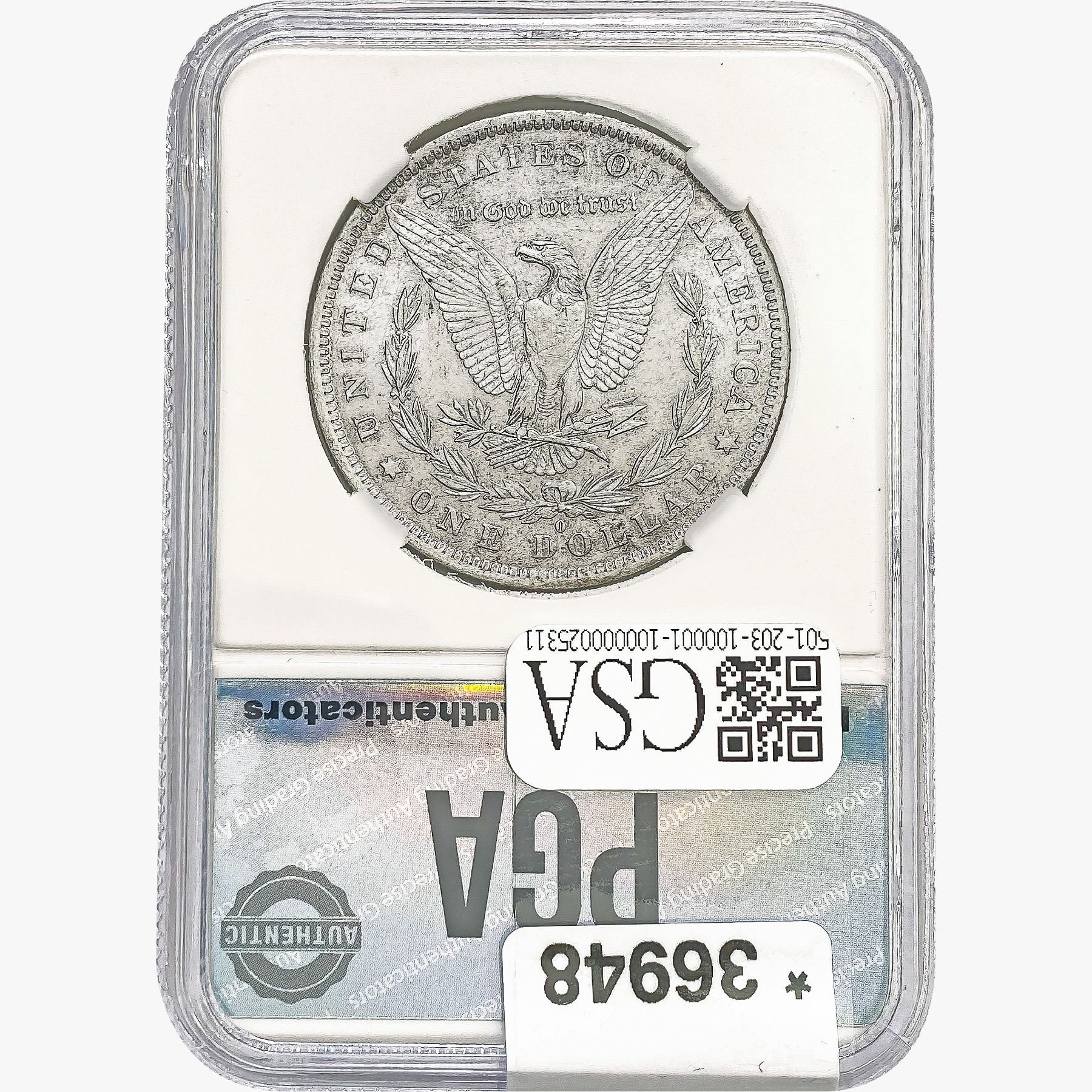 COINS AND CURRENCY LISTED IN GSA’S CATALOG AS GRADED AND ENCAPSULATED BY PCGS, NGC, ANACS, ICG, PCGS CURRENCY, PMG, PCGS BANKNOTE GRADING, CMC OR ANY OTHER THIRD-PARTY GRADING SERVICE ARE LIKEWISE SOLD “AS-IS” EXCEPT AS EXPRESSLY SET FORTH HEREIN. ALL THIRD-PARTY GRADING SERVICE GUARANTEES, INCLUDING AUTHENTICITY, ARE THE SOLE RESPONSIBILITY OF THE THIRD-PARTY GRADING SERVICE AND NOT WARRANTIES OR GUARANTEES OF GSA. BIDDERS SHOULD CONTACT THESE THIRD-PARTY GRADING SERVICES DIRECTLY WITH RESPECT TO ANY CLAIMS OR QUESTIONS THEY MAY HAVE CONCERNING THEIR GUARANTEES AND WARRANTIES. BIDDERS ACKNOWLEDGE AND AGREE THAT AUCTIONEER IS NOT BOUND BY OR LIABLE FOR ANY OPINION OR CERTIFICATION BY ANY THIRD-PARTY GRADING SERVICE. REMOVAL OF A PRODUCT FROM ITS PROTECTIVE CASING OR HOLDER OR ALTERATION OF ANY COIN HOLDER WAIVES ALL RIGHTS CONCERNING THE PRODUCT CONTAINED THEREIN.
