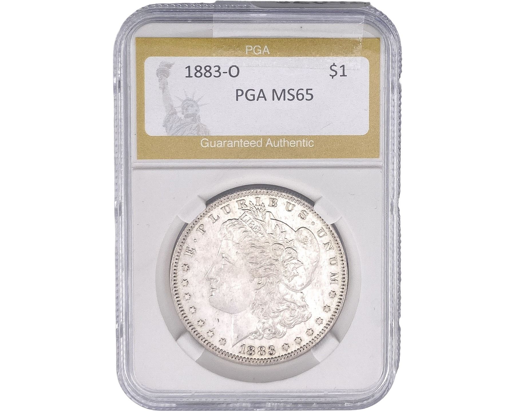 COINS AND CURRENCY LISTED IN GSA’S CATALOG AS GRADED AND ENCAPSULATED BY PCGS, NGC, ANACS, ICG, PCGS CURRENCY, PMG, PCGS BANKNOTE GRADING, CMC OR ANY OTHER THIRD-PARTY GRADING SERVICE ARE LIKEWISE SOLD “AS-IS” EXCEPT AS EXPRESSLY SET FORTH HEREIN. ALL THIRD-PARTY GRADING SERVICE GUARANTEES, INCLUDING AUTHENTICITY, ARE THE SOLE RESPONSIBILITY OF THE THIRD-PARTY GRADING SERVICE AND NOT WARRANTIES OR GUARANTEES OF GSA. BIDDERS SHOULD CONTACT THESE THIRD-PARTY GRADING SERVICES DIRECTLY WITH RESPECT TO ANY CLAIMS OR QUESTIONS THEY MAY HAVE CONCERNING THEIR GUARANTEES AND WARRANTIES. BIDDERS ACKNOWLEDGE AND AGREE THAT AUCTIONEER IS NOT BOUND BY OR LIABLE FOR ANY OPINION OR CERTIFICATION BY ANY THIRD-PARTY GRADING SERVICE. REMOVAL OF A PRODUCT FROM ITS PROTECTIVE CASING OR HOLDER OR ALTERATION OF ANY COIN HOLDER WAIVES ALL RIGHTS CONCERNING THE PRODUCT CONTAINED THEREIN.