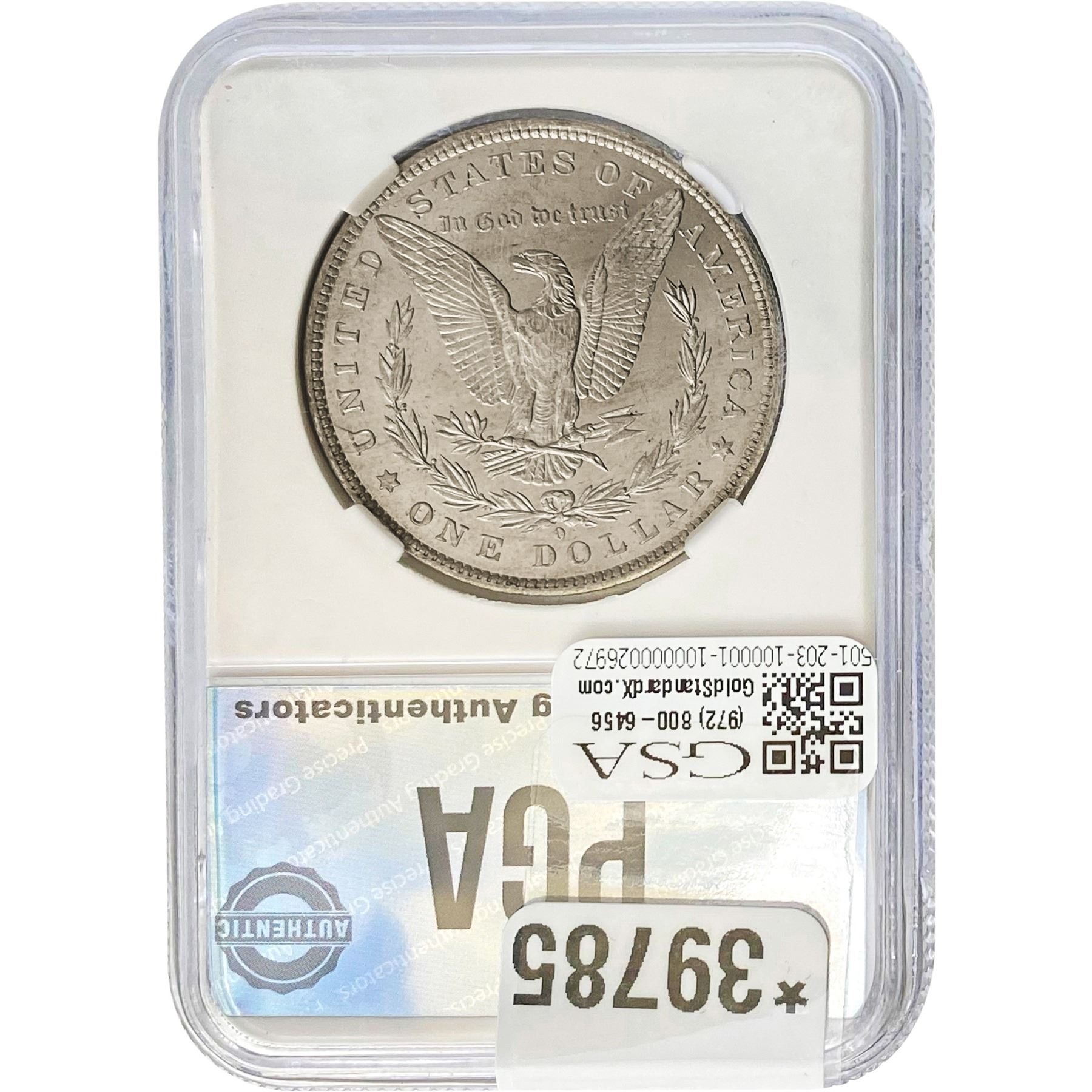 COINS AND CURRENCY LISTED IN GSA’S CATALOG AS GRADED AND ENCAPSULATED BY PCGS, NGC, ANACS, ICG, PCGS CURRENCY, PMG, PCGS BANKNOTE GRADING, CMC OR ANY OTHER THIRD-PARTY GRADING SERVICE ARE LIKEWISE SOLD “AS-IS” EXCEPT AS EXPRESSLY SET FORTH HEREIN. ALL THIRD-PARTY GRADING SERVICE GUARANTEES, INCLUDING AUTHENTICITY, ARE THE SOLE RESPONSIBILITY OF THE THIRD-PARTY GRADING SERVICE AND NOT WARRANTIES OR GUARANTEES OF GSA. BIDDERS SHOULD CONTACT THESE THIRD-PARTY GRADING SERVICES DIRECTLY WITH RESPECT TO ANY CLAIMS OR QUESTIONS THEY MAY HAVE CONCERNING THEIR GUARANTEES AND WARRANTIES. BIDDERS ACKNOWLEDGE AND AGREE THAT AUCTIONEER IS NOT BOUND BY OR LIABLE FOR ANY OPINION OR CERTIFICATION BY ANY THIRD-PARTY GRADING SERVICE. REMOVAL OF A PRODUCT FROM ITS PROTECTIVE CASING OR HOLDER OR ALTERATION OF ANY COIN HOLDER WAIVES ALL RIGHTS CONCERNING THE PRODUCT CONTAINED THEREIN.