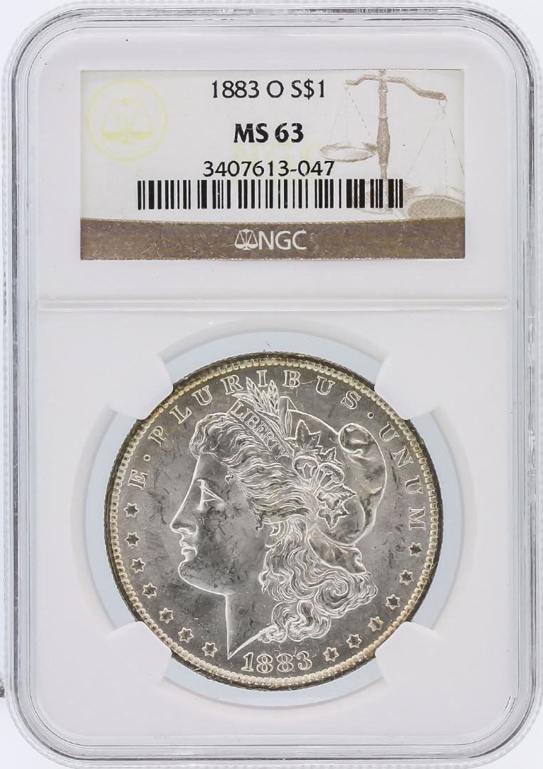 One 1883-O NGC MS63 Morgan Silver Dollar.