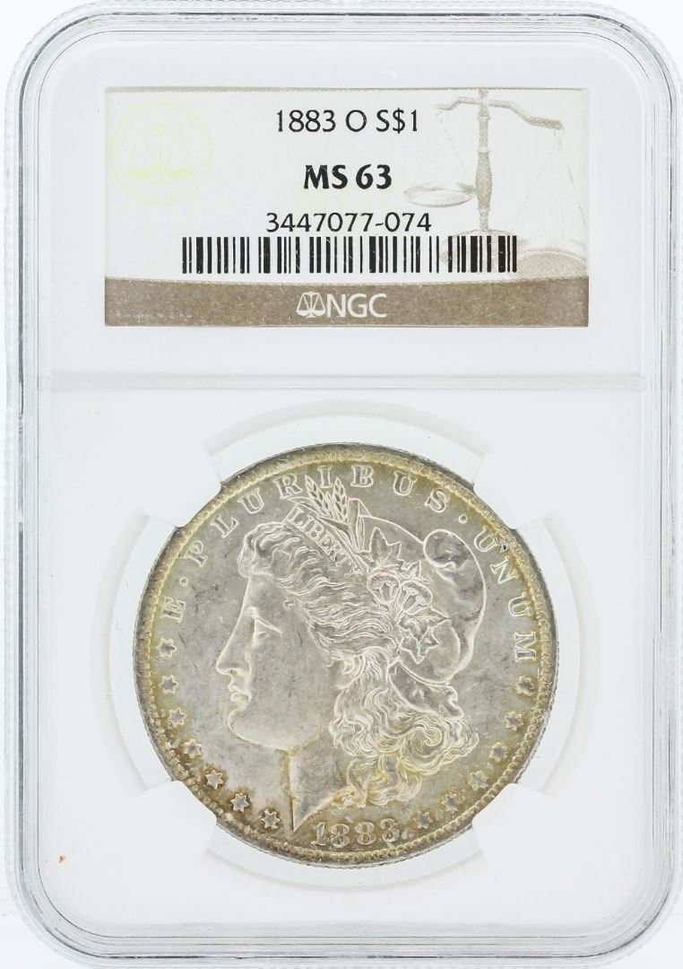 One 1883-O NGC MS63 Morgan Silver Dollar.