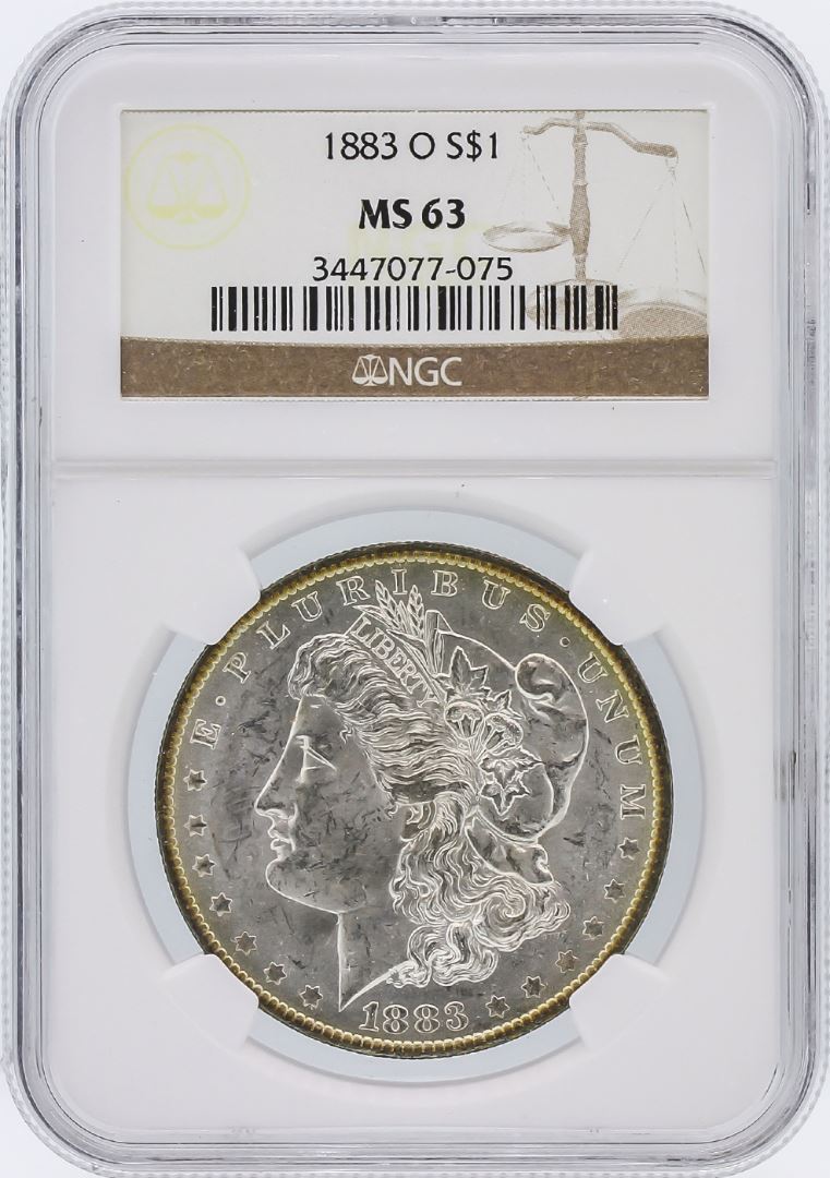 One 1883-O NGC MS63 Morgan Silver Dollar.