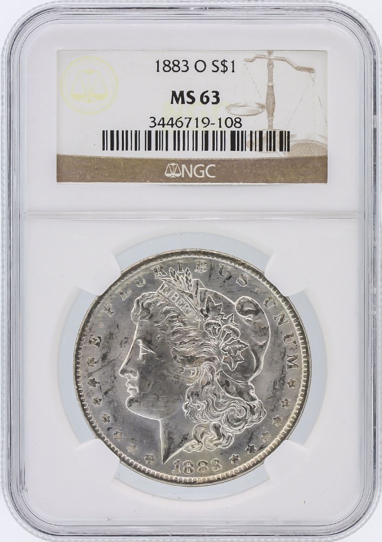One 1883-O NGC MS63 Morgan Silver Dollar.