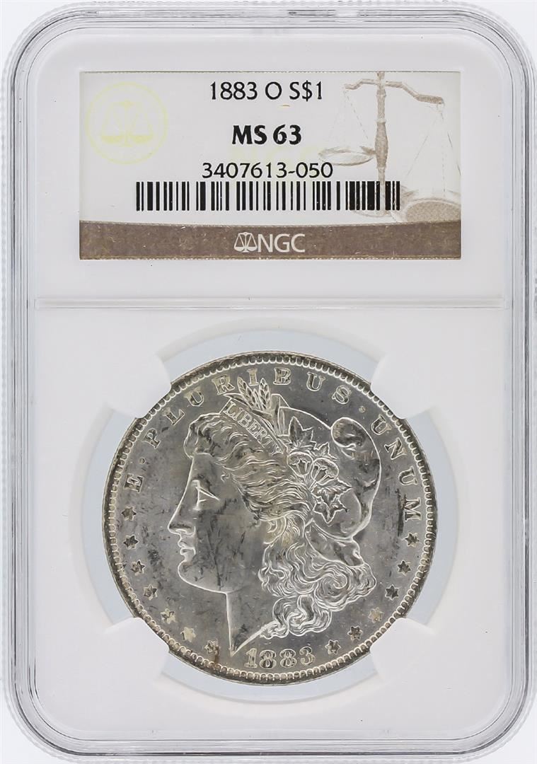 One 1883-O NGC MS63 Morgan Silver Dollar.