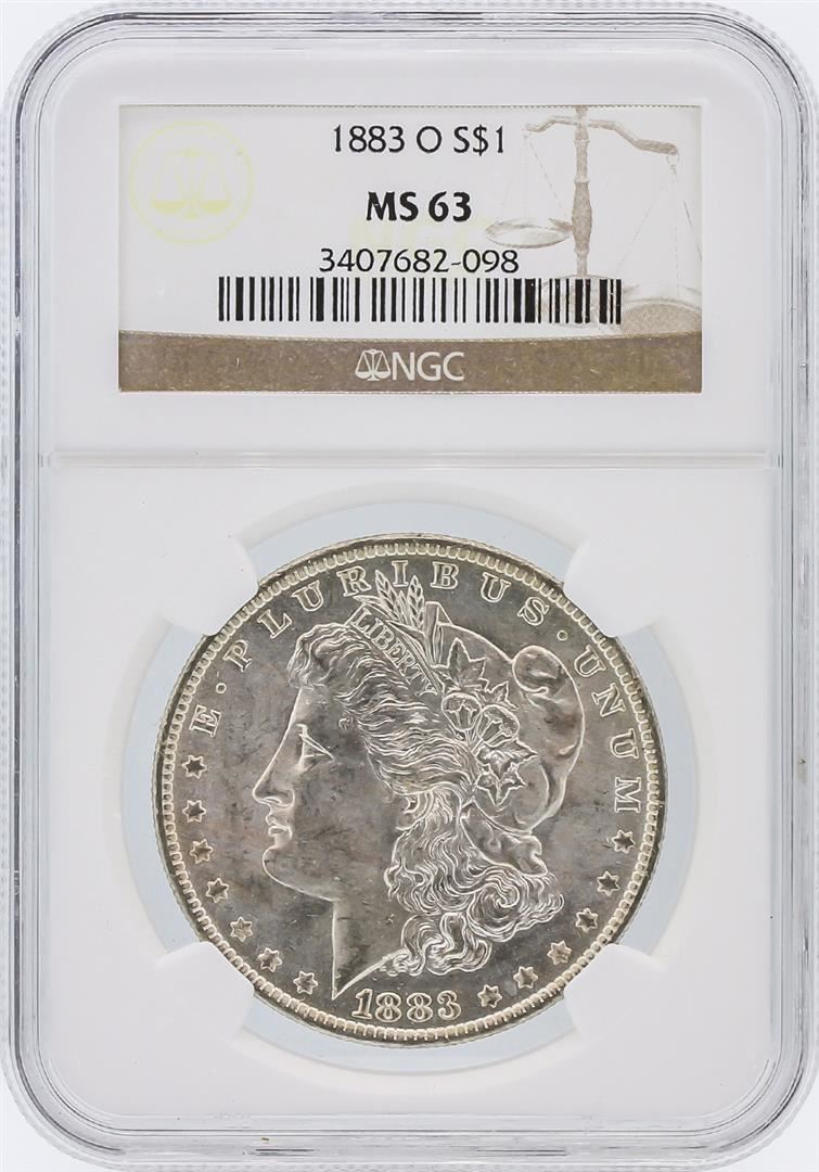 One 1883-O NGC MS63 Morgan Silver Dollar.