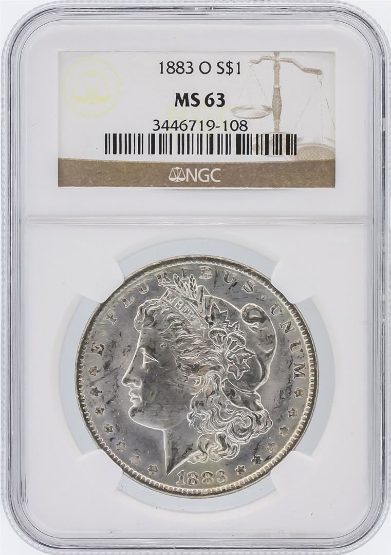 One 1883-O NGC MS63 Morgan Silver Dollar.