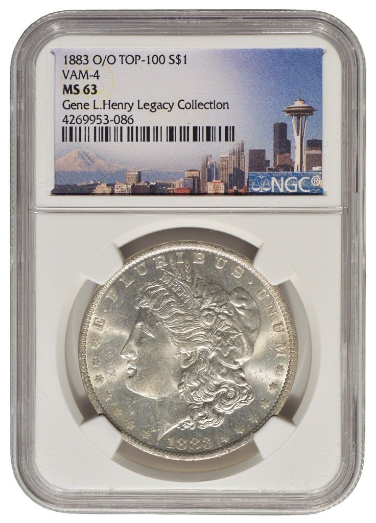 One 1883-O/O $1 Morgan Silver Dollar Coin NGC MS63.