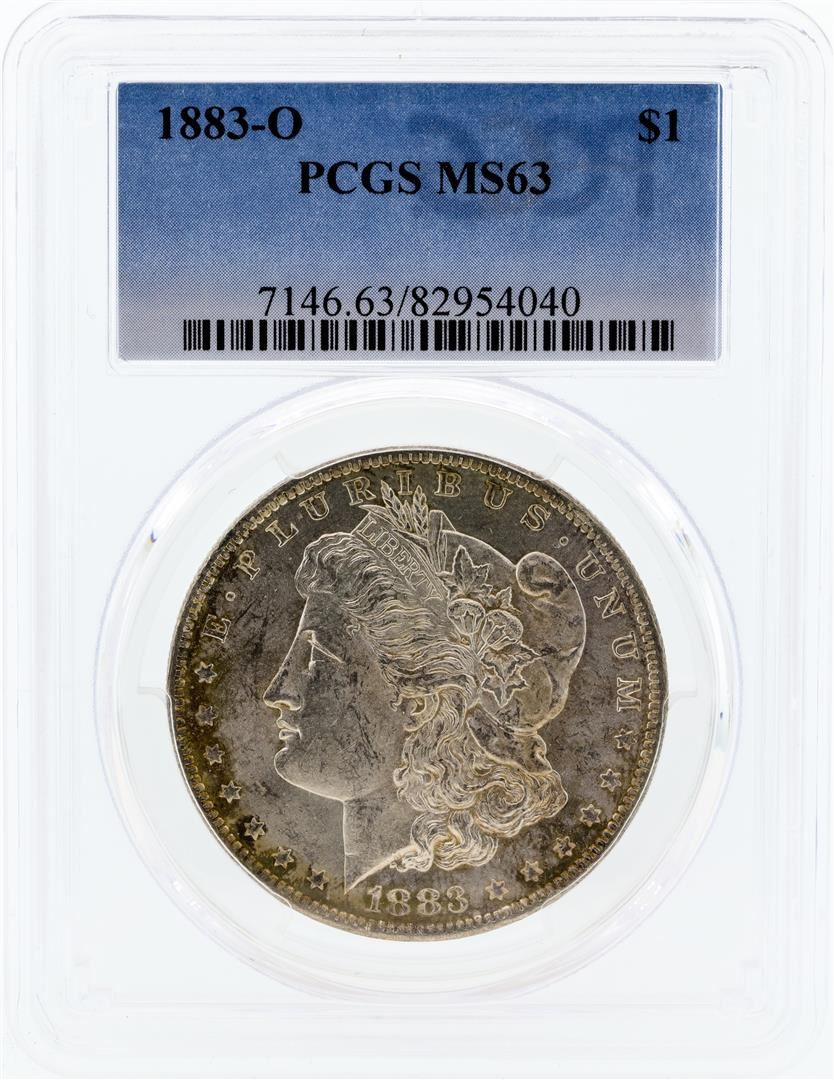 One 1883-O PCGS MS63 Morgan Silver Dollar.