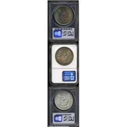 <B>1883-O<S$1> MS64 PCGS,</B></I> beautiful orange, rose, ocean-blue, and lemon patina on the reverse, the obverse has a golden-brown border; <B>1896 MS65 NGC,</B></I> vibrant tobacco-brown and olive colors; and a <B>1902-O MS65 PCGS,</B></I> the obverse is gorgeously toned in sky-blue, gold, ruby-red, and lime-green hues. 3 Coins <BR><BR><B>Important notice:</B> Heritage usually auctions material at the rate of 200-250 lots per hour. On some occasions eBay Live bid software or the Internet may not be able to keep up with the pace of the auction. We recommend placing a realistic absentee bid now as insurance to avoid disappointment. Occasionally the auctioneer may eliminate or reject an eBay Live bid, and the auctioneer may also reopen a lot after the close of the eBay live bidding (usually because we missed an audience bid), and may reject your bid even if it shows you as the winning bidder. By bidding via eBay Live, you agree that Heritage may award the lot to another bidder at its sole discretion under the circumstances described above or any other reasonable circumstances. Since eBay bids are not shown to us until we open the lot on the floor, we treat those bids just like floor bids. In most cases the floor responds before the eBay bid is presented to us, due to Internet lag time, so for consistency we have made it a policy that floor bids are always considered first over tie eBay live bids. Also please note that all Heritage lots purchased through eBay Live carry a 20% Buyer's Premium. Please make sure you read the Terms and Conditions before you bid. </span></font></tr></table></td></tr></table>
