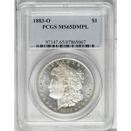 <B>1883-O<img border='0' src='http://www.heritagecoins.com/images/star.gif' width=10 height=10>$1> MS65 Deep Mirror Prooflike PCGS.</B></I> A striking and deeply mirrored Gem with excellent contrast. Unlike most Deep Mirror Prooflikes, this wonderfully detailed example has orange-red patina on the central devices.