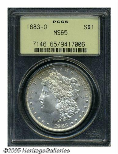 <B>1883-O<S$1> MS65 PCGS.</B></I> Mostly brilliant, save for some amber toning along part of the obverse border. Boldly detailed with a particularly clean, subtly reflective finish.<BR><I>From The Milwaukee Shore Collection.</B></I>
