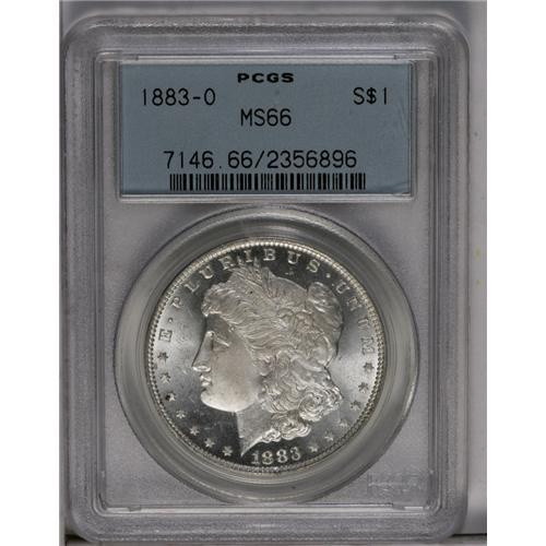 <B>1883-O<img border='0' src='http://www.heritagecoins.com/images/star.gif' width=10 height=10>$1> MS66 PCGS.</B></I> A distinct cameo effect is achieved on each side of this Premium Gem, with frosted snow-white devices over deeply reflective fields. Well struck and carefully preserved, with a remarkably clean cheek.