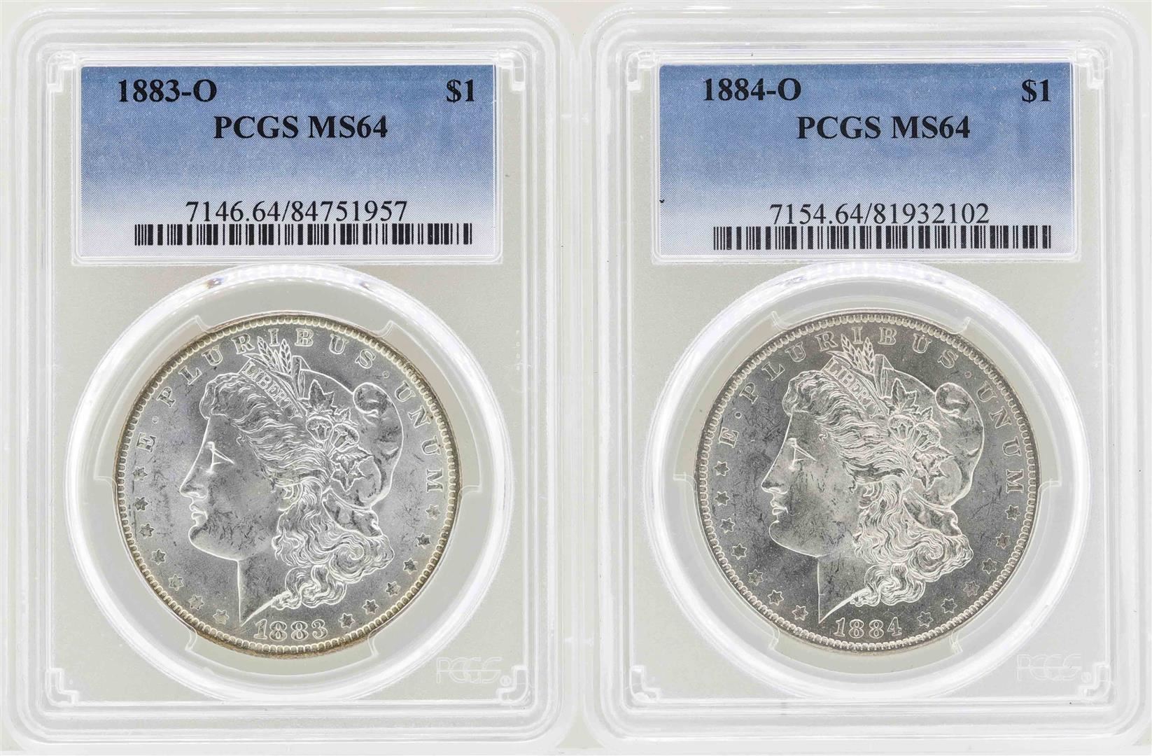 One 1883-O to 1884-O $1 Morgan Silver Dollar Coins NGC MS64. NGC Certified.