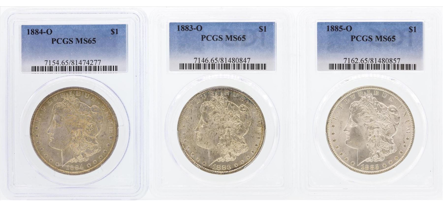 One 1883-O to 1885-O $1 Morgan Silver Dollar Coin PCGS MS65. PCGS Graded.