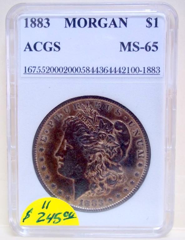 ACGS Certified Mint State-65. ! This coin features fantastic toning on the obverse and a blast white reverse. A great addition to any high grade collection! A highly collectible coin with a very modest price tag!