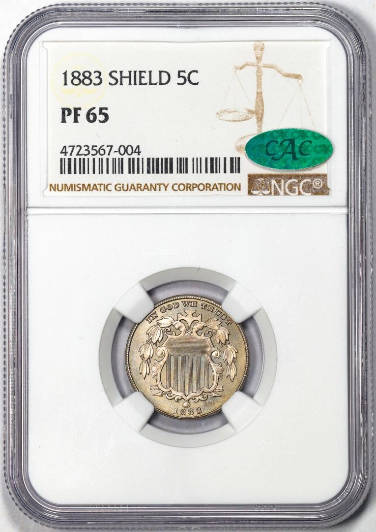 One 1883 Proof Shield Nickel Coin NGC PF65 CAC. NGC Certified.