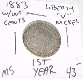 1883 *RARE-1ST YEAR* LIBERTY "V" NICKEL *RARE MS HIGH GRADE* RED BOOK VALUE IS $43.00+!! COIN CAME OUT OF SAFE!! ***Coin, Currency & All Items Listed in this auction - Grades, Conditions and Values are not Safe Deposit Coins LLC Responsibilty. Grades, Condition and Values are determined by Consigner(s) & Buyers ONLY