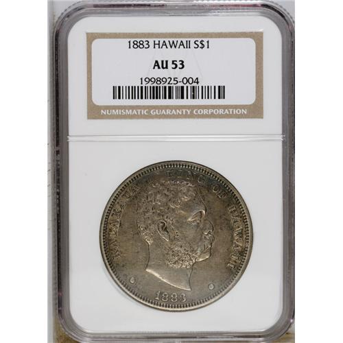 1883 S$1 Hawaii Dollar AU53 NGC. A hint of peripheral