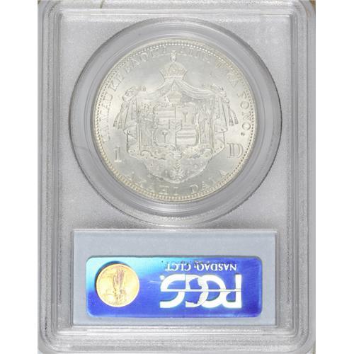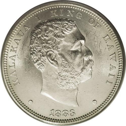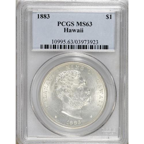 <B>1883 S$1 Hawaii Dollar MS63 PCGS.</B></I> This fully lustrous Akahi Dala is faintly toned gold and ivory-gray. Boldly struck, and the reverse is well preserved. The obverse displays scattered minute marks, but no more than appropriate for the grade. The scarcest of the circulating 1883 denominations. Population: 10 in 63, 26 finer (2/07).<BR><BR><b>Shipping:</b> Coins & Currency (<a target="_blank" href="http://www.heritageauctions.com/common/shipping.php">view shipping information</a>)